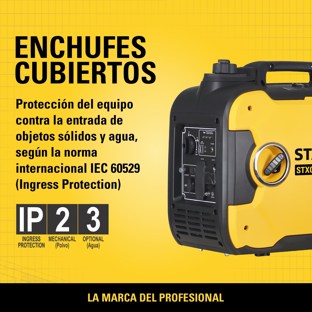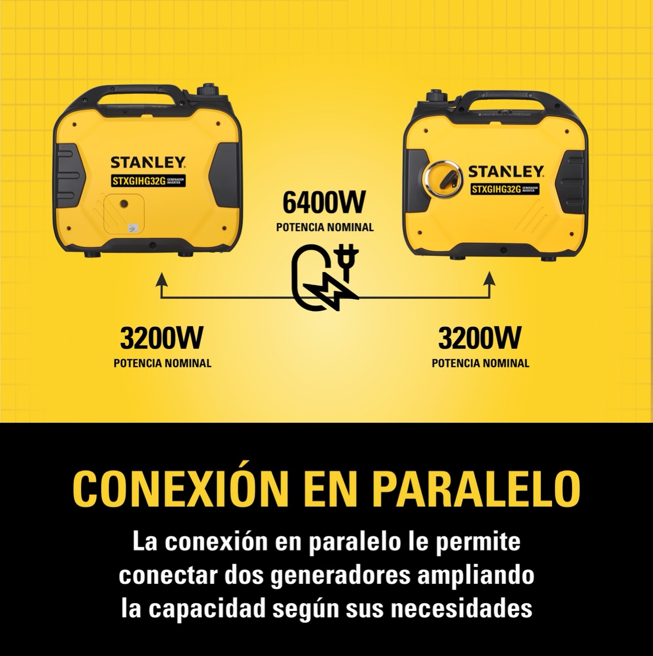 El generador inverter STANLEY® STXGIHG32G ofrece energía portátil y eficiente con 3200W nominales y 3500W máximos, ideal para campamentos, trabajos exteriores o respaldo doméstico. Su tecnología inverter (THD ≤2%) garantiza energía estable para equipos electrónicos sensibles. Incorpora un motor 4 tiempos de 163 cc, modo ECO y hasta 7.5 horas de autonomía con bajo nivel de ruido (58 dB). Incluye sensor de monóxido de carbono, protección por sobrecarga y alerta de bajo aceite. Su diseño compacto con batería, puertos USB-C, salidas AC/DC y conexión en paralelo brinda máxima portabilidad y versatilidad.